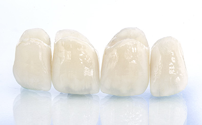 セラミック・シェルを取り付けるために、歯の表面を約0.3mm〜0.5mm程度削合いたします。その後、歯の型取りを行います。1〜2週間でセラミック・シェルが出来上がり、専用接着剤と光照射によって歯にしっかりと接着いたします。